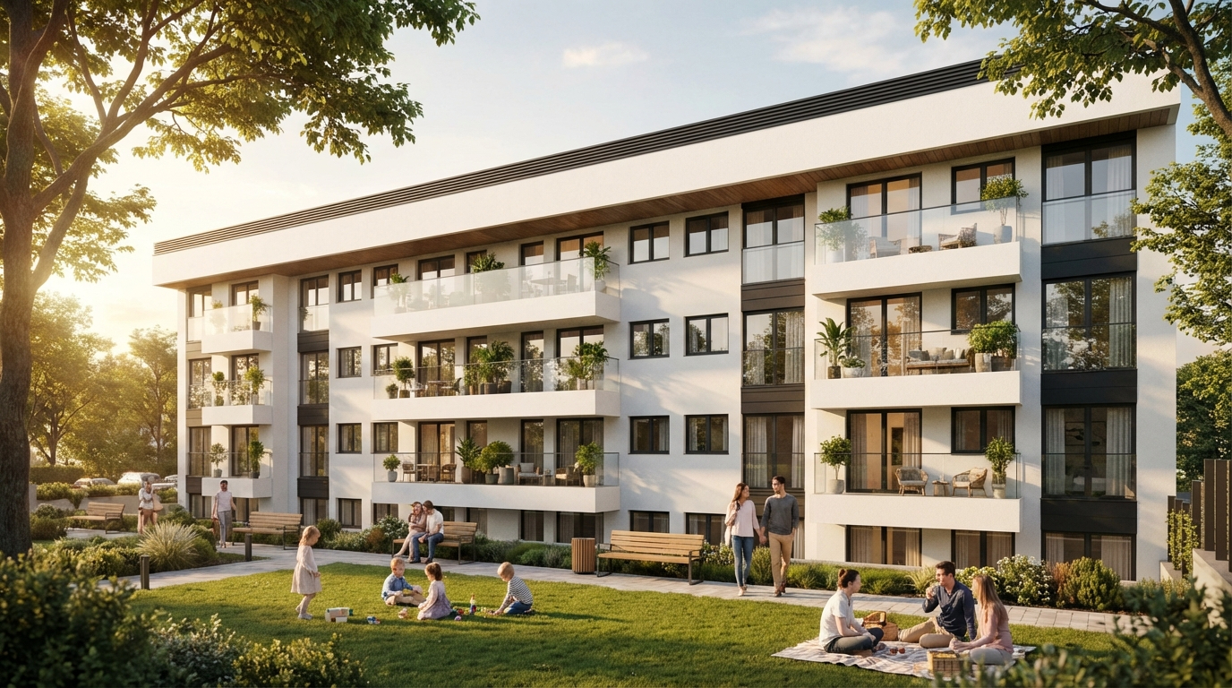 El resultado es un conjunto residencial equilibrado y bien integrado, donde la estética contemporánea se combina con soluciones constructivas pensadas para el bienestar diario. Un proyecto preparado para responder a las nuevas formas de vivir la ciudad, apostando por espacios funcionales, eficientes y adaptados a las necesidades actuales y futuras de sus habitantes.